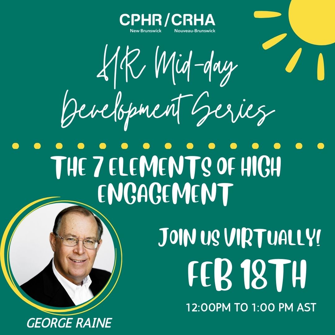 In this practical yet thought-provoking webinar, we will teach CPHR NB's members an actionable blueprint for building a high-engagement work culture. Drawing from 20 years of study in Canadian workplaces, George will share a clear and effective framework for creating a high-engagement culture. Through real-life examples, he will illustrate the key elements and discuss how HR often fails to embrace the mandate they need to do this effectively. George will challenge traditional views of HR’s relationship with employees and introduce concrete leadership practices that HR managers can implement. Prepare to see HR in a whole new light! |